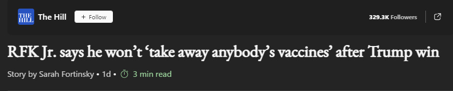After Trump’s victory, Kennedy Jr. was quick to say that he was not going to be taking away people’s vaccines.