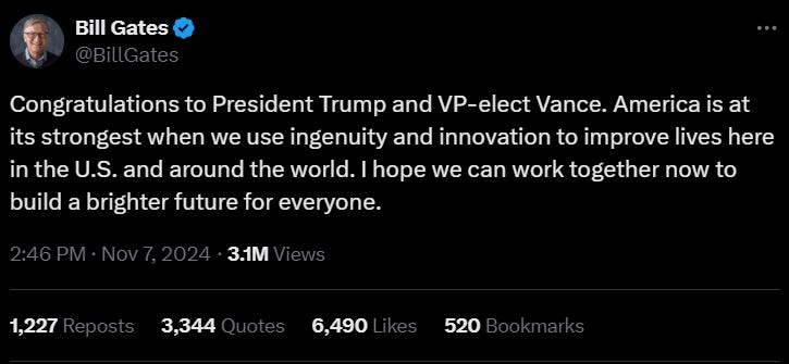 Gates had previously expressed interest in Trump’s campaign after his victory in November. Gates said at the time: “Congratulations to President Trump and VP-elect Vance. America is at its strongest when we use ingenuity and innovation to improve lives here in the U.S. and around the world. I hope we can work together now to build a brighter future for everyone.”