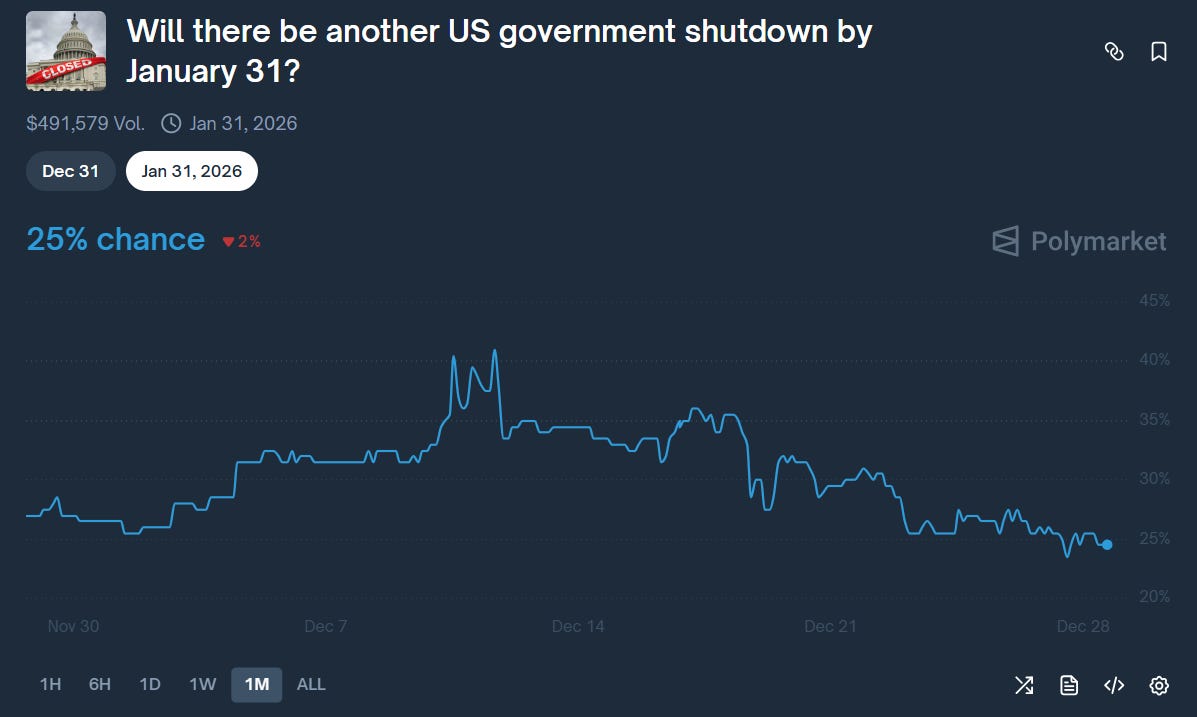 […] Last week, [House Speaker Mike] Johnson told his conference in a closed-door meeting that he wants to pass those bills by the Jan. 30 deadline — a goal that many in the GOP ranks consider aspirational at best. One House Republican granted anonymity to describe the private meeting said he turned to one of his colleagues and whispered, “I wouldn’t bet on that on Polymarket,” referring to an online prediction market.