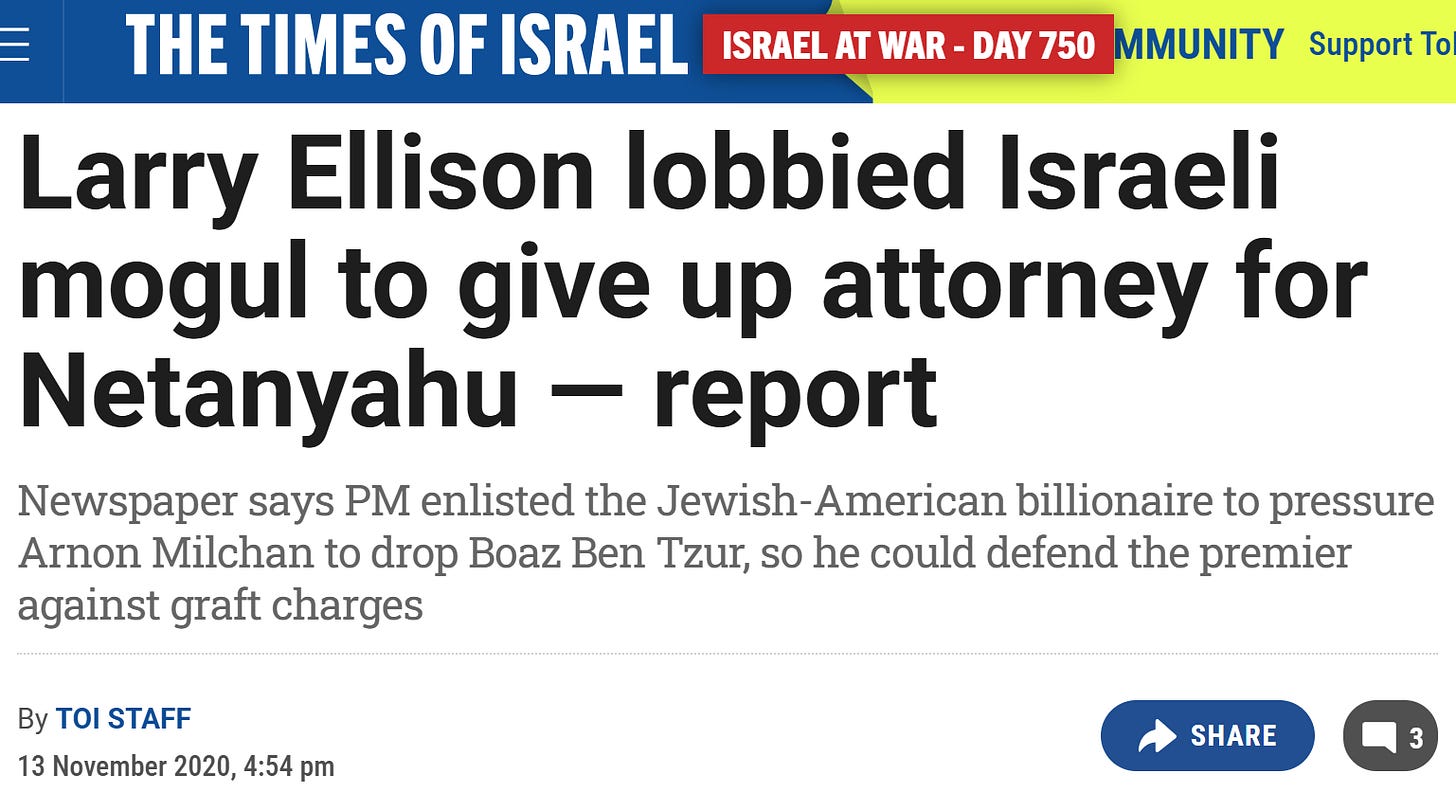 Nevertheless, Ellison and Oracle work closely with Israel and the IDF. MR Online pointed out that "among his closest personal friends is Benjamin Netanyahu, with whom he vacationed on his private island in Hawaii. Ellison was so impressed and confident in the Israeli prime minister that he offered him a seat on his company’s board, replete with a salary of $450,000.”