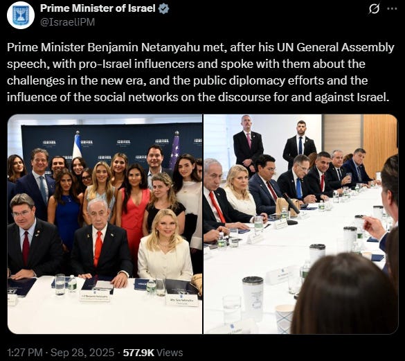 Last month, days after Trump signed his executive order to solidify the deal, Netanyahu hosted a conference with a number of American Jewish and pro-Israel social media influencers following Bibi’s speech at the United Nations. “The only value in life is its purpose and if it depends on the survival and prosperity of the Jewish People and rebuffing the wave of hatred and denigration — you must fight!”, said the PM.