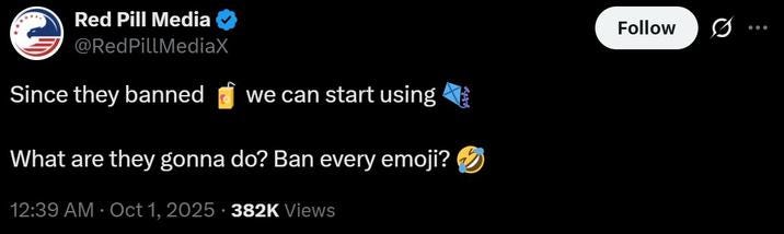The juice emoji is one of the many things getting taken down. Other posts that appear to scrutinize the Trump administration over certain things are getting taken down or shadow banned, including particular criticism of Charlie Kirk.