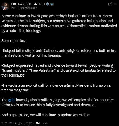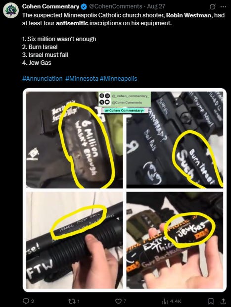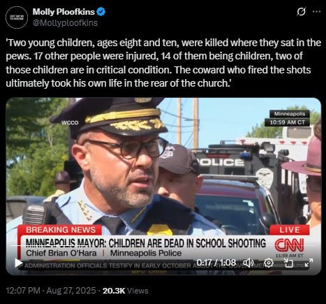 On August 27th, a transgender shooter Robin Westman, a male born as Robert Westman, shot-up Annunciation Catholic School in Minnesota.