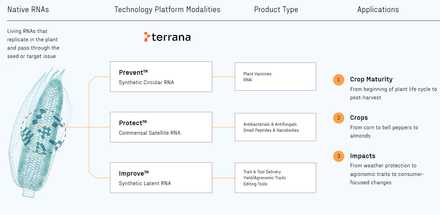 “Terrana sources native RNAs from across the plant world and gives them new instructions to make any desired trait and solve for problems at any point in the plant’s lifecycle.”