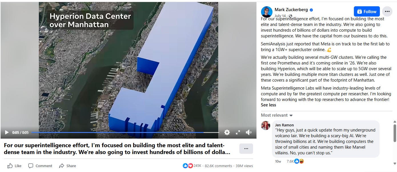 In July, Meta announced the creation of the Prometheus datacenter in Louisiana, which will be the size of Manhattan