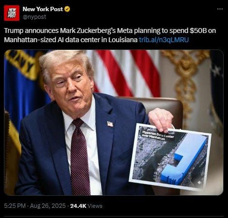 Who cares if the water is contaminated and the water tables are drained? These are poor people problems. But just wait, I’m sure we’ll be directed to buy the MAHA-approved patriot water with no microplastics in it (because Bobby and Oz told me it’s safe). Who cares if this pushes the grid to the breaking point?