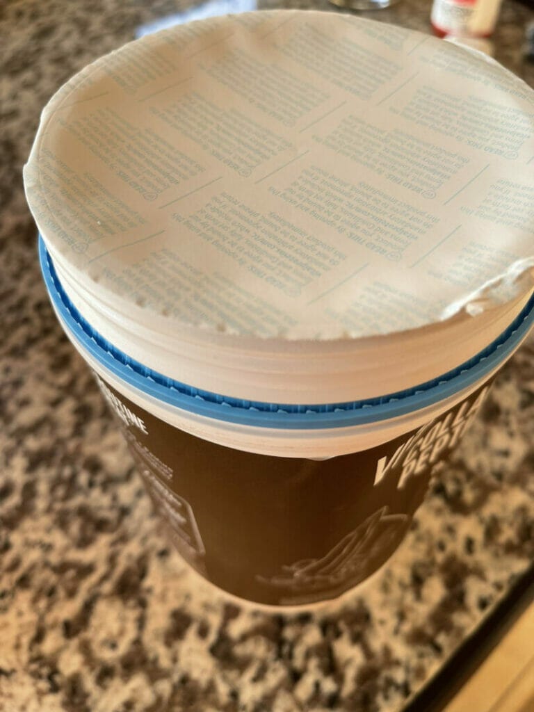 But specifically getting back to Vital Proteins’ brand of collagen supplements, you know we live in strange times when this happens: a snapshot of the protective seal on these peptide containers, underneath the lid, shows a cryptic and concerning message on them: