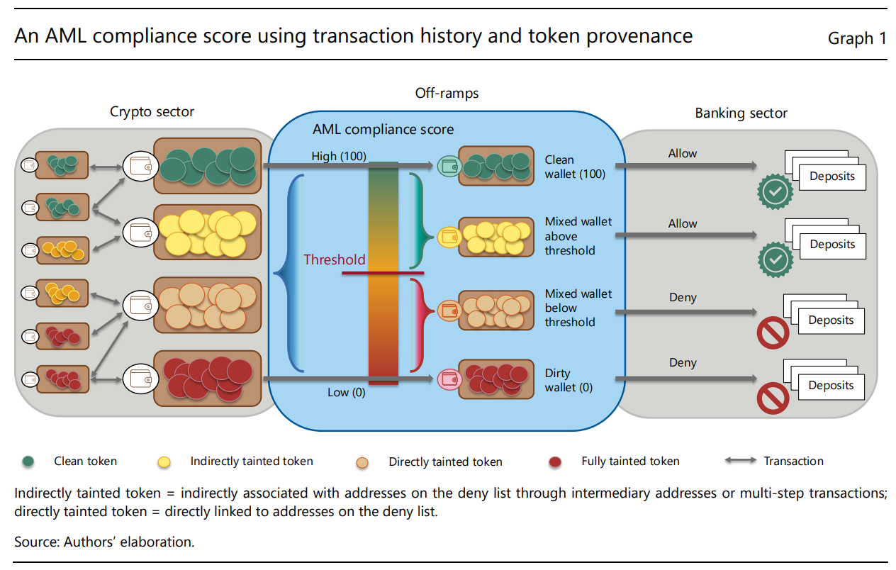 “Compliance scores of the type described here could also generate incentives to support better outcomes in terms of overall compliance. A duty of care among users would thus be established, potentially influencing behaviour even among those transacting solely through unhosted wallets. If such duty of care took hold, there would be an incentive to transact with clean allow-listed wallets that could generate a positive feedback loop in terms of compliance.”