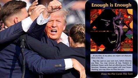 One of the cards in the game is called “Enough Is Enough,” and the description reads: “At any time, at any place, our snipers can drop you… Have a nice day.”