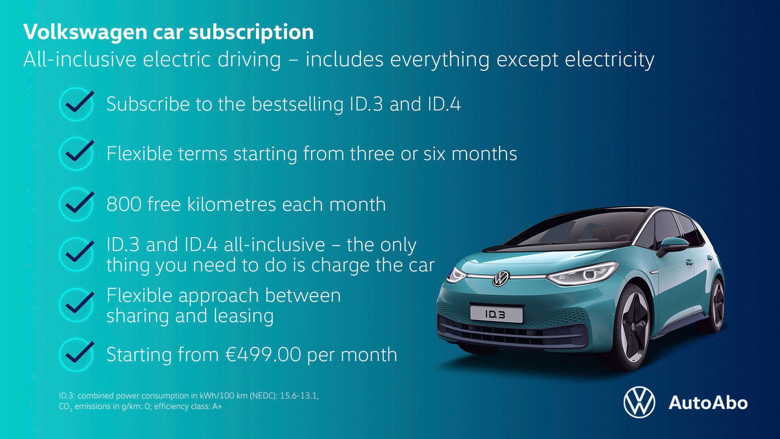 “A growing number of people don’t want to own a vehicle permanently, but would like the exclusive use of one for a defined period. The Volkswagen AutoAbo is a flexible new subscription offering that is mid-way between leasing and car sharing. We estimate that, by 2030, around 20 percent of our revenue could come from subscriptions and other short-term mobility offerings.”
